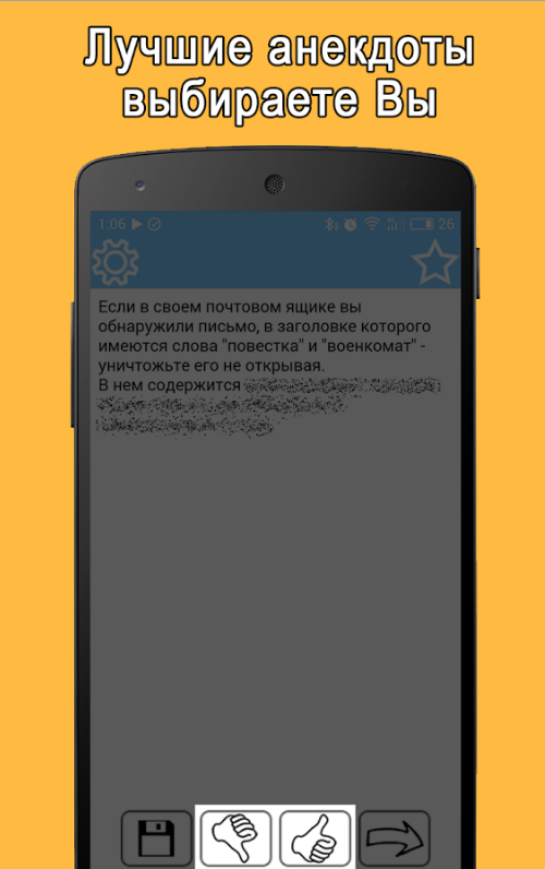 W nudnej godzinie duża baza żartów w kieszeni sprawi, że będziesz się śmiać i rozweselić. Brak kategorii, po prostu otwórz aplikację iw losowej kolejności na ekranie pojawi się anegdota. Czytaj - przeglądaj.