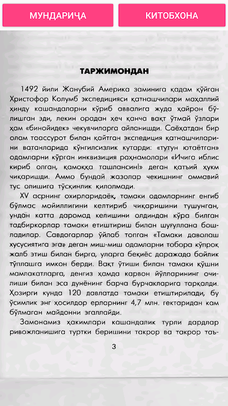 Мазкур далиллар аҳоли орасида тамаки истеъмол қилишга қарши тарғибот ишларини кучайтириш ва че- кишнинг зарари ҳақида мунтазам ахборот бериб бо- риш зарурлигини тақозо этади. Шундан келиб чиқиб бу