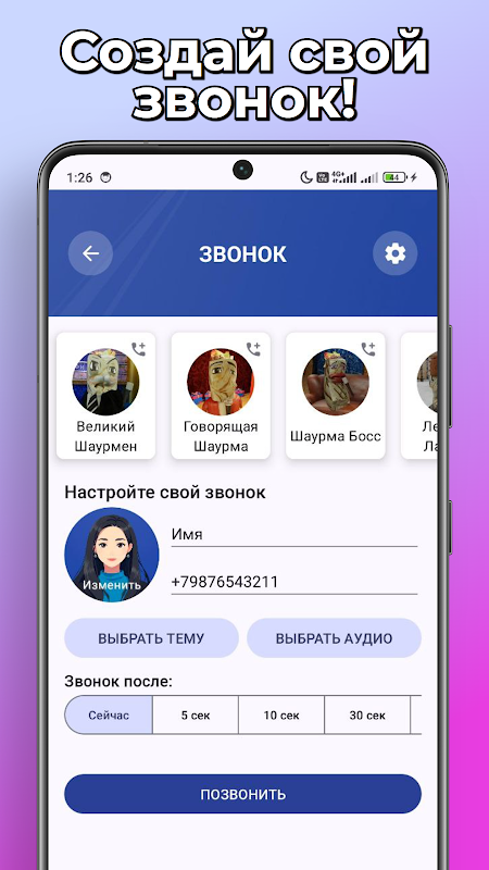 ✅ Fałszywe połączenia - odbierz telefon z ważnymi informacjami o shawarmie lub shawarmie od bohaterów memów.