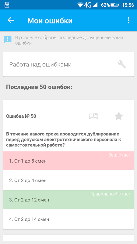 - режим "Избранные вопросы", который позволяет создать список избранных вопросов и затем пройти тест по сформированному списку