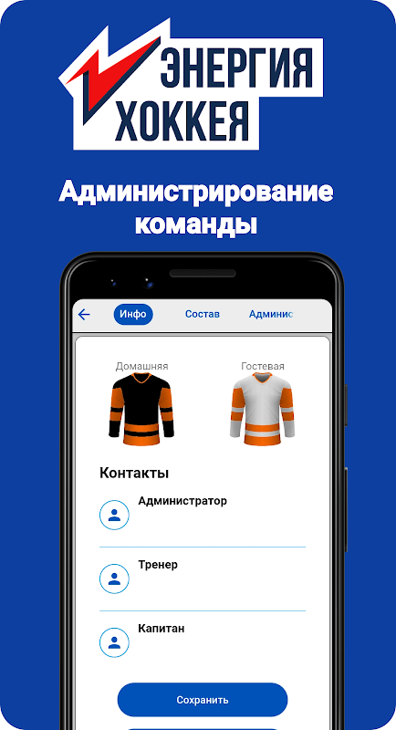 Энергия хоккея — приложение для управления и организации хоккейных команд. Голосования, чат, расписания тренировок, игр, тренировочных сборов, денежных сборов и уведомлений для всех участников команды и еще многое другое.