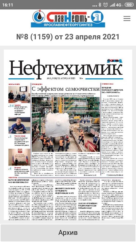 Aplikacja do czytania publikacji korporacyjnej Slavnft-YANOS PJSC.