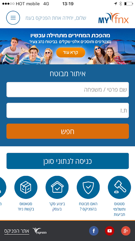 בפניקס. לצפות בסטאטוס ולקבל עדכונים באפליקציה, במייל וב-SMS