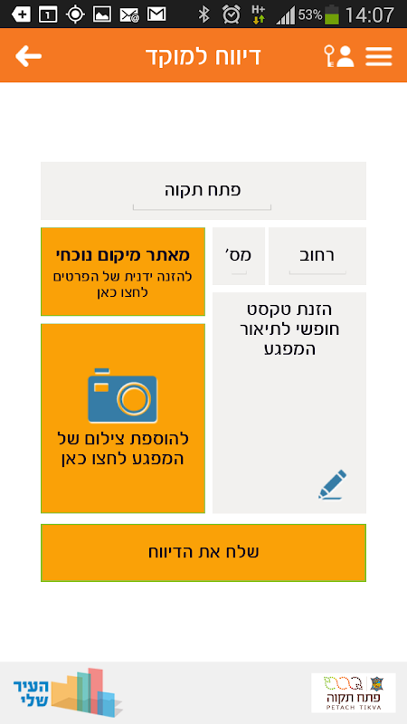- Zgłoś się bezpośrednio do centrum miasta i dogonić nacisk na raportowanie statusu w czasie rzeczywistym z Petah Tikva Gminy stosie.