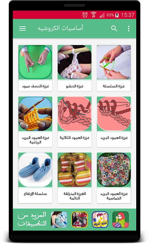 كما ثم إضافة قسم فيديو خاص بكل درس تعليم الكروشيه.