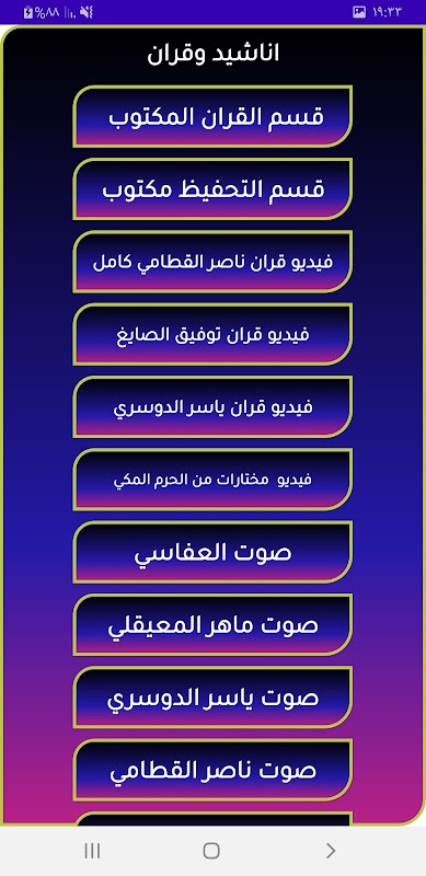 Święty Koran jest pisany i dźwiękowy (treść pisana działa w trybie offline, podczas gdy dźwięk wymaga połączenia z Internetem).