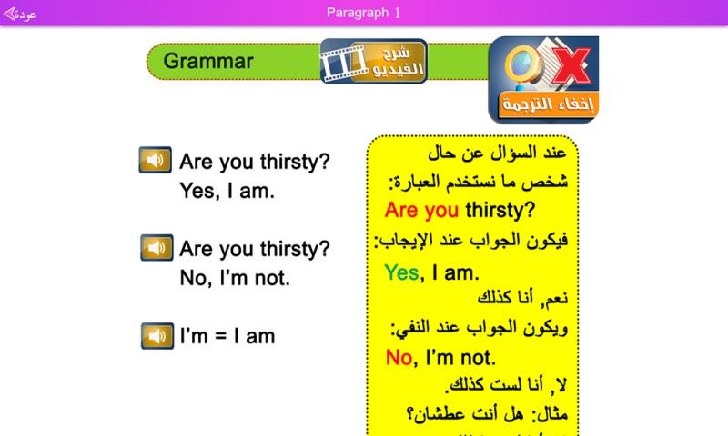 في هذا التطبيق تم شرح كتاب الطالب بشكل كامل مع ترجمة لكل المفردات والجمل مع شرح للقواعد مع ترجمة الشرح وترجمة نصوص القراءة. كما وقمنا بقراءة كافة المفردات والجمل والنصوص بصوت محترف لكي يتعلم الطالب القراءة السليمة للغة الإنجليزية.