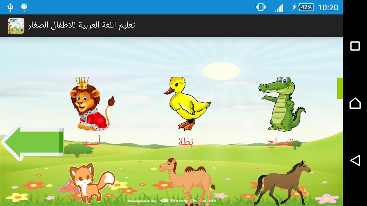 بواسطة تطبيق تعليم الحروف العربية للأطفال بدون نت يمكن للطفل ان يتعرف على انواع الفواكه والخضراوات والطيور والحيوانات بطريقه سهله.