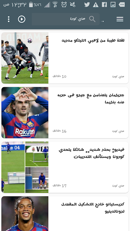 متابعة أحداث ونتائج المباريات في الدوري الاسباني والدوري الإنجليزي الممتاز ودوري أبطال أوروبا لحظة بلحظة وكذلك معرفة الجدول الزمني للأحداث اليومية مع العديد من الفيديوهات