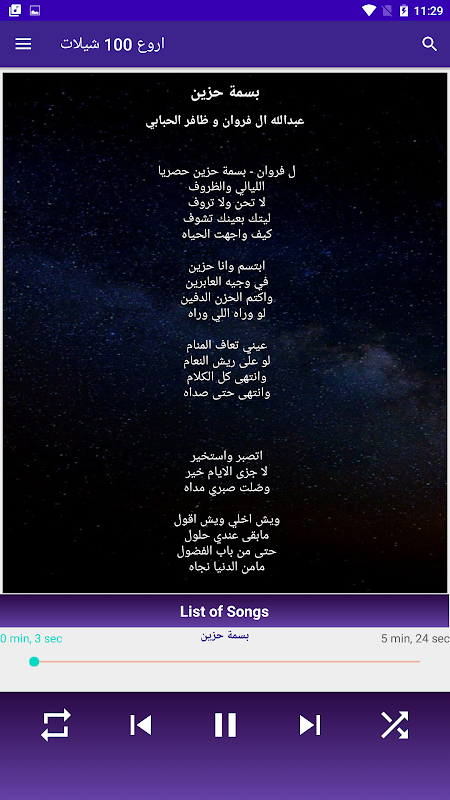✅ يحتوي على كلمات كل اغنية مع اسم الفنان الخاص بالشيلة