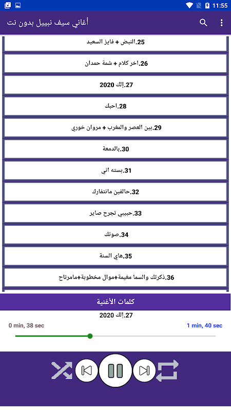 W aplikacji znajdują się wszystkie piosenki Saif Nabil 2020, a także 2019 i wszystkie piosenki, które śpiewał, stare lub nowe