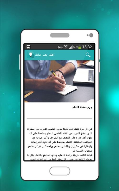 تطبيق أفكار تغير حياتك: تطبيق يحتوي على نصائح لتطوير الذات و المهارات والقدرات الشخصية أفكارونصائح مختارة ستغير حياتك تشكل خلاصة تجارب تغني عن قراءات مجلدات تلهم القارىء وترشده في سعيه الدؤوب نحو مستقبل ناجح وحياة افضل .