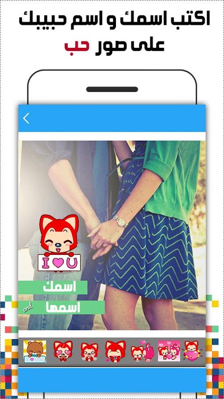 إسمك وإسم حبيبك في صورة هو تطبيق رائع يمكنك من كتابة إسمك و إسم حبيبك في صورة بسهولة تامة دون الحاجة إلى إستعمال برنامج التعديل و الكتابة على الصور .