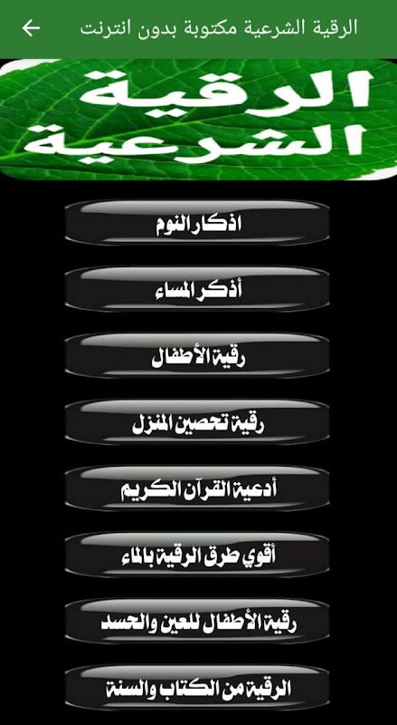 الان تستطيع قراءة الرقية الشرعية بمنتهى السهولة وهي باقة مختارة بعناية من الكتاب والسنة،الذي يعمل بدون نت نهائيا.