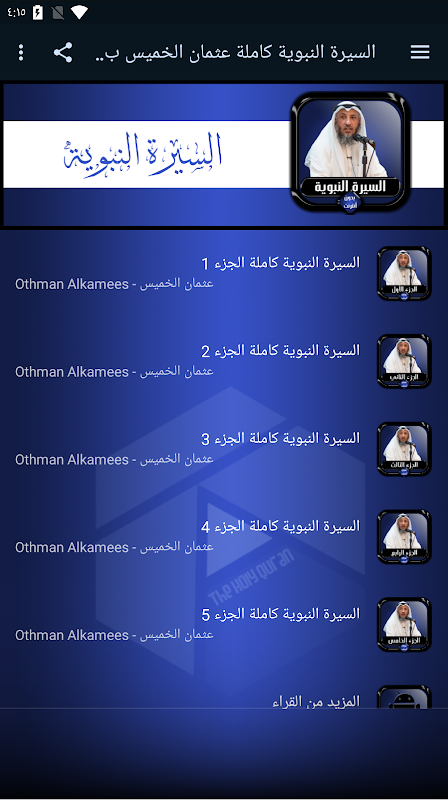 Po pobraniu aplikacji możesz z łatwością słuchać ściany z biografią Proroka głosem Szejka Othmana Al-Khamisa bez internetu za darmo w dowolnym miejscu i czasie.