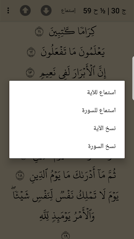 * - خاصية عداد الآيات القرآن اثناء القراءة حيث يظهر لك كم آية قرأت ويمكنك تحديد عدد معين للقراءة في كل مرّة .