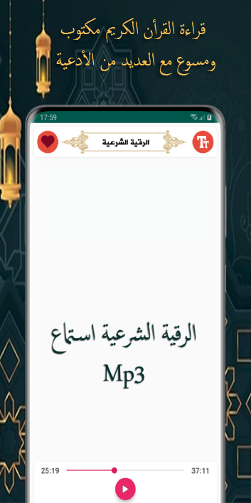 Aplikacja zawiera błagania o Qunoot, poranne i wieczorne wspomnienia oraz legalną ruqyah w głosie szejka Saada Al-Ghamdiego