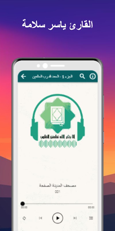 Koran z Medyny, opowiadany przez Hafsa na podstawie autorytetu Asima, jest podzielony na strony, na których głos recytatora Yassera Salamy