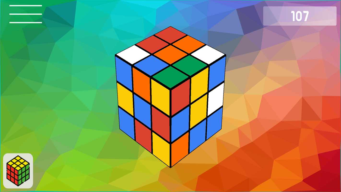 1. Gra rozpoczyna się od głównego interfejsu, który zawiera kostkę Rubika, nad którą gracz pracuje