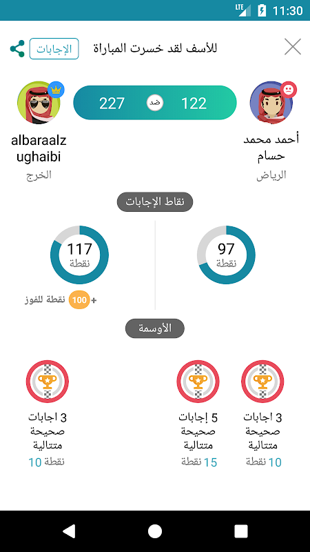 - اللاعب الفائز بمباراة ما هو الأسرع بالإجابات الصحيحة.