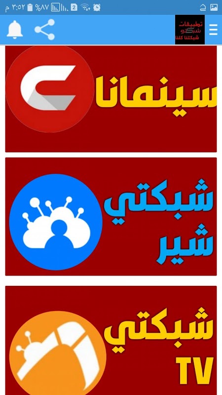 Aplikacja zawierająca aplikację Shabakaty z Share, TV i Cinema