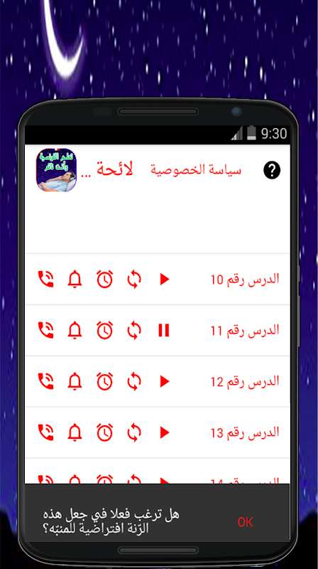 التطبيق يحتوي خصائص رائعة مثل تعيين مقطع معين في رنة المنبه على هاتفك لإيقاظك صباحا أو ليلا أو وقتما تشاء وبالتالي تذكرك بالمقطع بطريقة رائعةجدا وتعليمية تجعلك تحفظ الجمل بسهولة واحترافية.