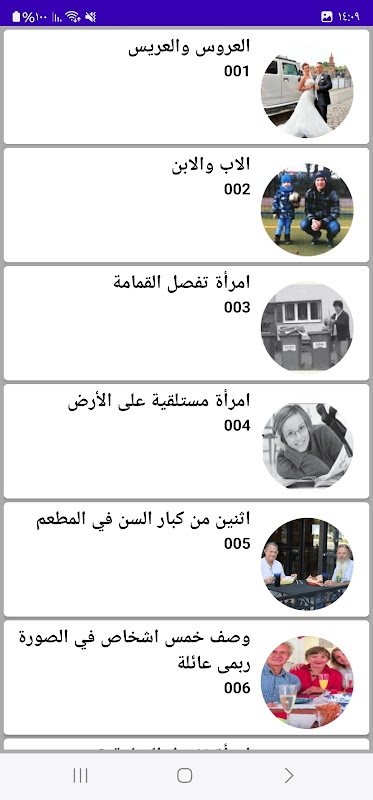 Opis różnych obrazków z tłumaczeniem na język arabski w celu poszerzenia słownictwa.