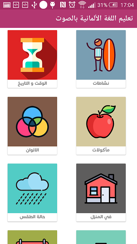 تطبيق تعلم اللغة الالمانية بالصوت و الصورة ، يمكنكم من تعلم اللغة الالمانية بسرعة و بسهولة وبدون معلم، وأيضا سهل الاستخدام و بجودة صوت عالية ، و يعمل من دون الحاجة إلى انترنت.