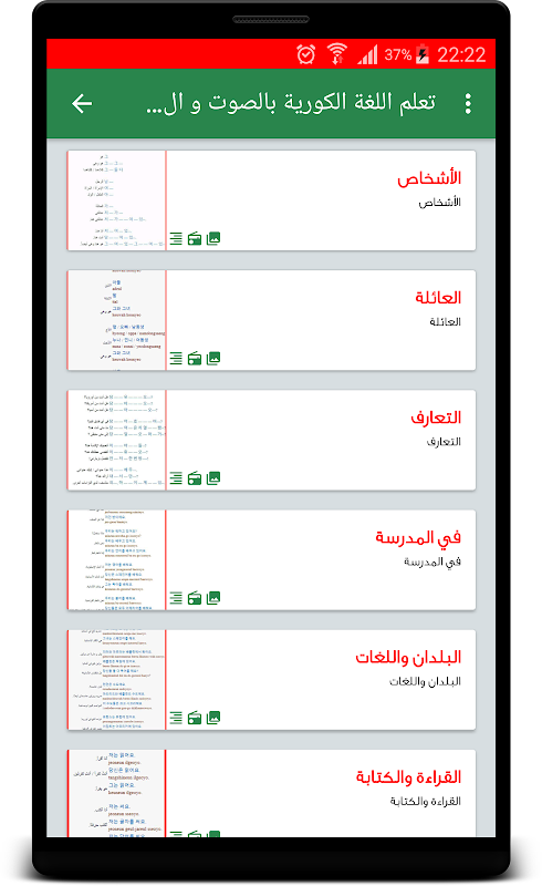 تطبيق تعلم اللغة الكورية صوت و صورة ، يمكنكم من تعلم اللغة الكورية بسرعة و بسهولة وبدون معلم، وأيضا سهل الإستخدام و بجودة صوت عالية ، و يعمل من دون الحاجة إلى انترنت.