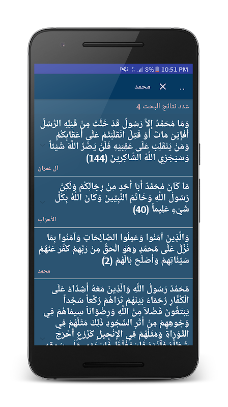 2. Szukaj wersety Koranu z pełnym interpretacji, a także, aby wyświetlić liczbę wyników tych badań.