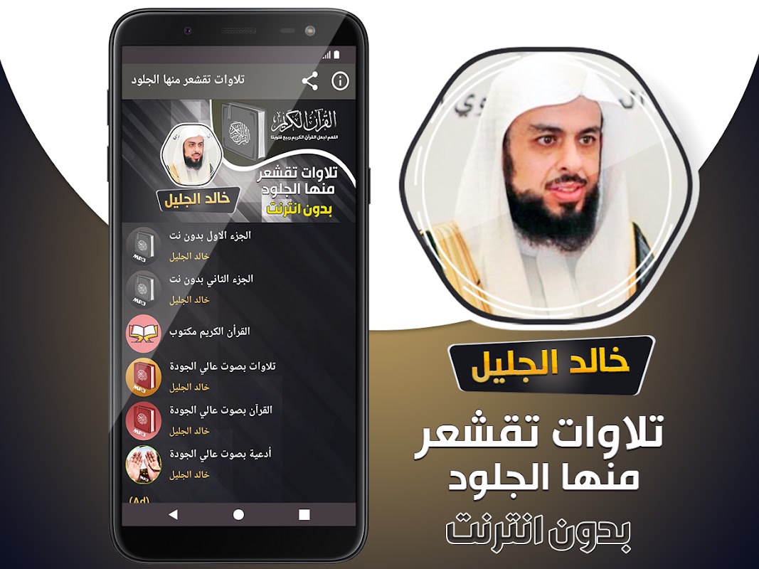 🔹 Aplikacja Khaled Al-Jalil zawiera recytacje, które drżą przez skórki, słuchając surów Koranu bez internetu i charakteryzuje się tą aplikacją do swobodnego recytowania Koranu.
