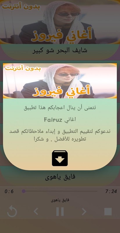 ان كنتم من عشاق فيروز لا تنسو تقييم التطبيق ب 5 نجوم