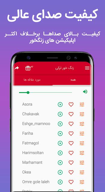 بیش از 50 زنگ خور جدید و زیبای ترکی برای گوشی اندرویدی شما.زیبا و لوکس با کیفیت صدای عالی. اگر از گشتن دنبال یه آهنگ زنگ خاص، زیبا و سنگین برای گوشیتون خسته شدید پس این اپلیکیشن زنگخور ترکی رو امتحان کنید