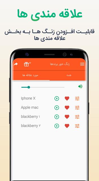 - دارای چهار بخش زنگ تلفن ، زنگ اعلان، زنگ ساعت و لیست علاقه مندی های شما