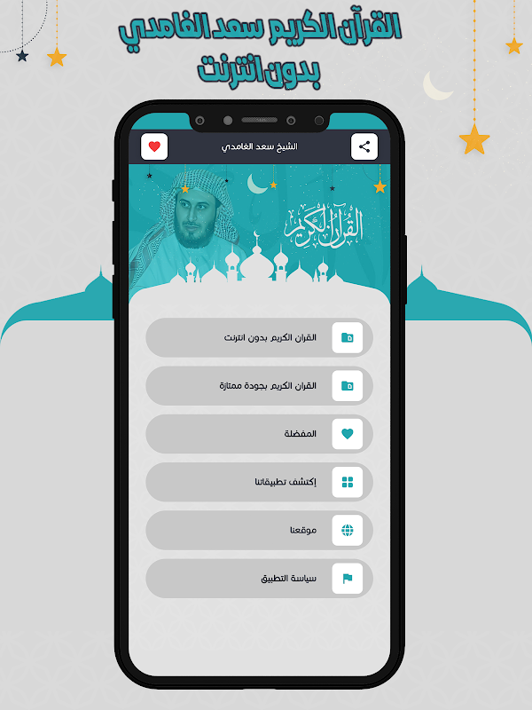 Aplikacja Święty Koran w głosie Saada Al-Ghamdiego pozwala z łatwością usłyszeć wszystkie surowe Koranu za pośrednictwem telefonu komórkowego lub tabletu za pomocą jednego programu, który zawiera wszystkie surah Koranu. Android. Aplikację Święty Koran można z łatwością pobrać głosem Saada Al-Ghamdiego, dzięki czemu można cieszyć się recytacją Koranu głosem Szejka Saada Al-Ghamdiego, gdziekolwiek zechcesz.