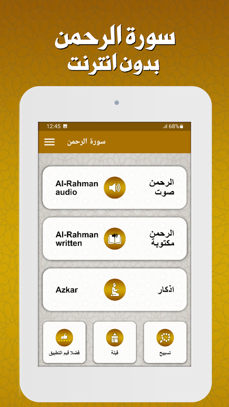 Aplikacja, która oferuje Surat Al-Rahman bez Internetu, oprócz Surat Al-Rahman pisanej głosem bez sieci