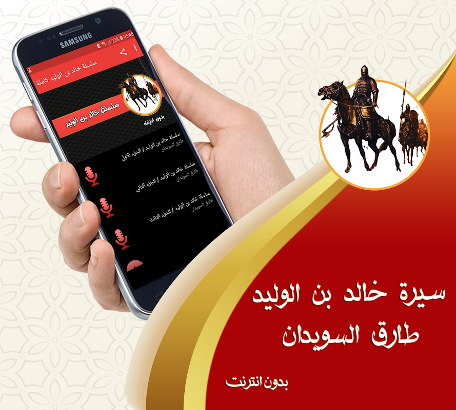 ❇ تطبيق سيرة خالد بن الوليد كاملة بدون انترنت بصوت طارق السويدان يستحق التحميل لا يتطلب مساحة كبيرة على الهاتف وله مميزات كثيرة اذ يمكن استعمال محتوى تطبيق سيرة خالد بن الوليد صوت بدون نت كمنبه او رنة للجوال وهو يتيح لك الاستمرار في الاستماع لقصص سيرة خالد بن الوليد كاملة بدون نت في خلفية التطبيق عند تلقي مكالمة او تصفح مواقع اخرى