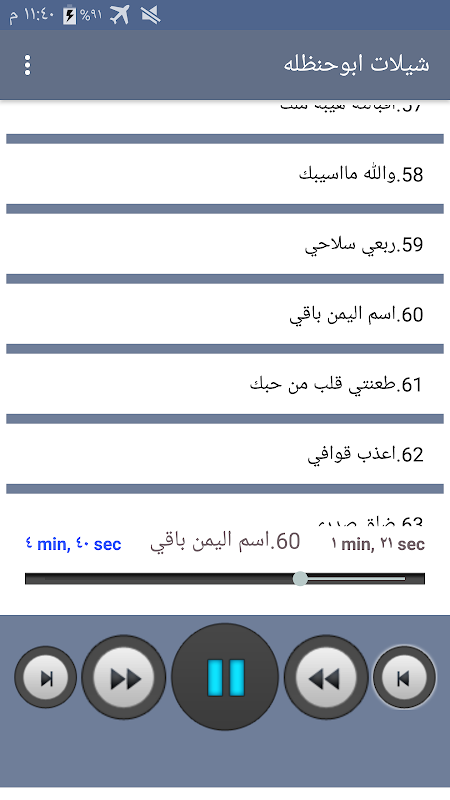 يحتوي التطبيق شيلات ابو حنظله على الشيلات التالية: