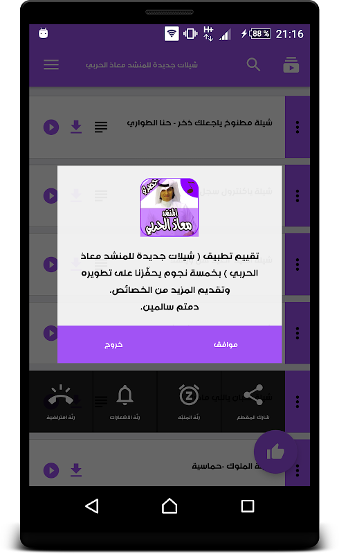 وتبقى غاليكما أن التطبيق سهل الاستعمال و يشتغل من دون نت بعد التحميل بالاضافة إلى الخاصيات التالية لتطبيق :"شيلات جديدة للمنشد معاذ الحربي''