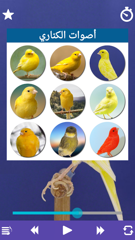التطبيق يحتوي على مجموعة كاملة من أصوات الكناري للتعليم و تحفيز الإناث على التزاوج