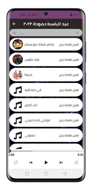 Piosenki Abdela Basseta Hamoudy 2023 bez sieci, charakterystyczna aplikacja dedykowana fanom piosenek Abdela Basseta Hamoudy, czy to starych, czy nowych piosenek Abdela Basseta Hamoudy.