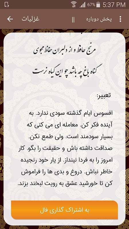Program Hafiz z pełnym liryczny wyświetlania, interpretacji, i głos czyta tekst na wolny