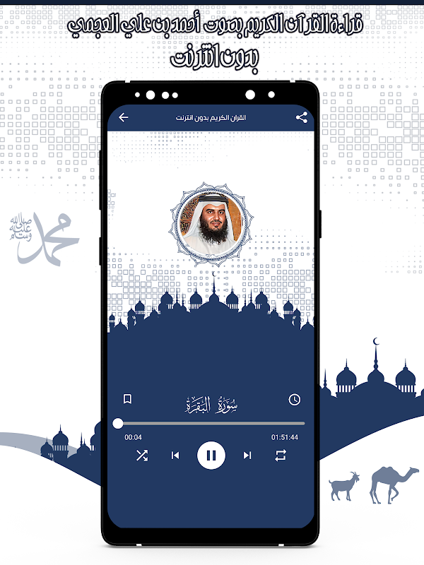 Po pobraniu aplikacji możesz słuchać surów Szlachetnego Koranu z głosem Szejka Ahmeda Al-Ajmi za darmo, zawsze i wszędzie, z łatwością.