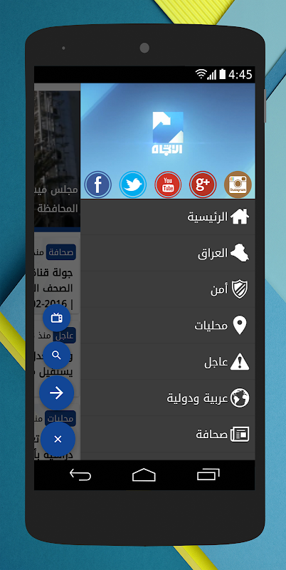 يتيح تطبيق قناة الاتجاه الفضائية على أجهزة الأندرويد متابعة آخر أخبار العراق والعالم الإسلامي والعربي لحظة بلحظة