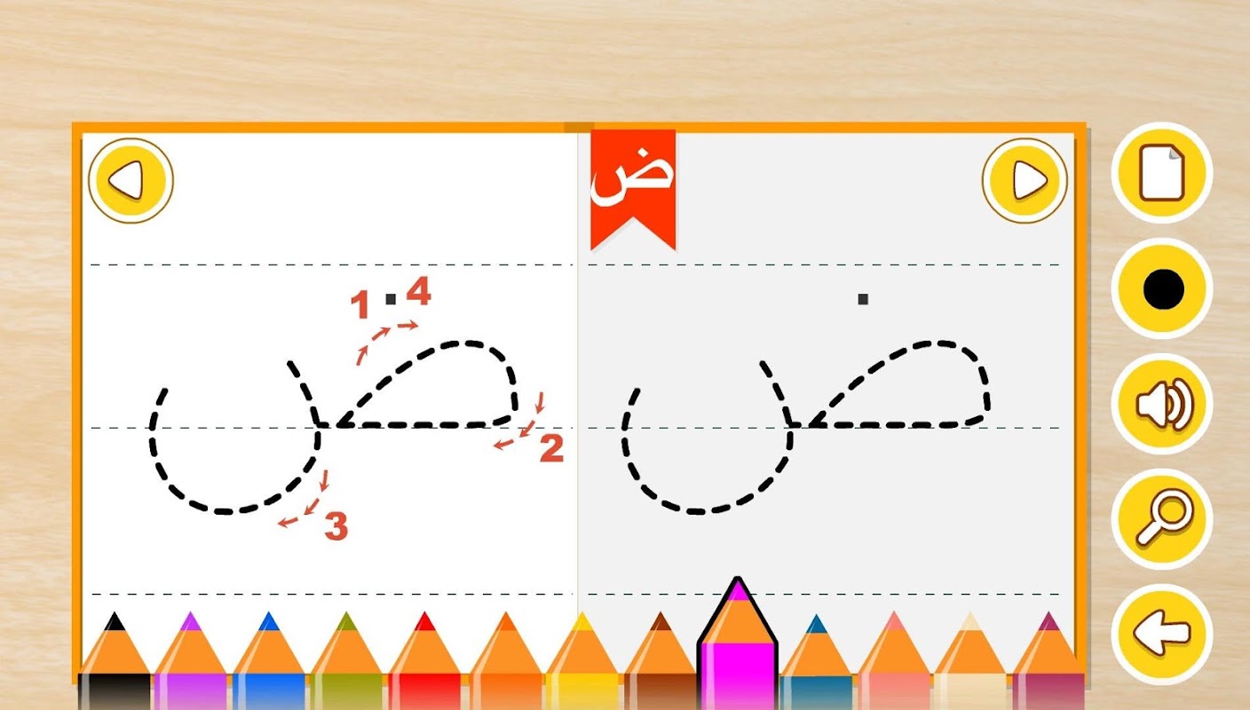 تعلم جهة الكتابة : يوفر البرنامج برنامج ذكي لتعلم جهة كتابة الحروف العربية بالربط بين نقاط تساعدة على معرفة جهة الكتابة