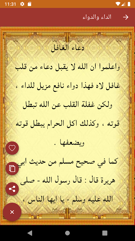 يمكنك من خلال التطبيق مشاركة حكم ابن القيم مع اصدقائك وعلى الفايسبوك