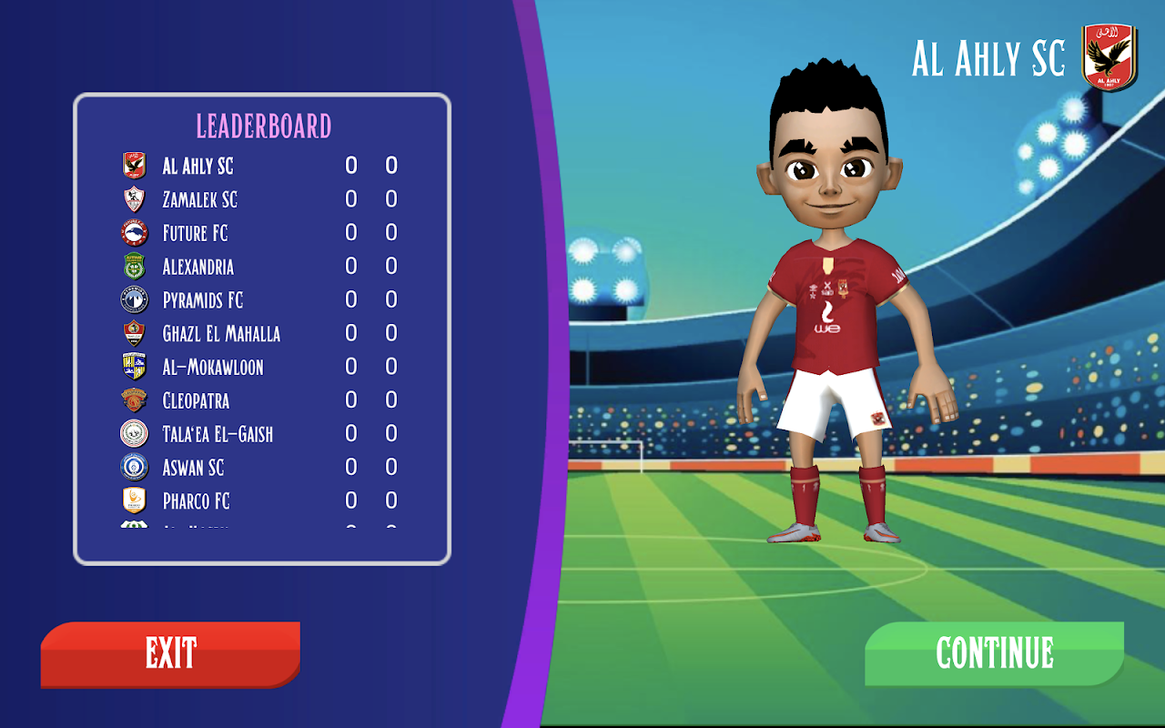Wybierz swoją ulubioną drużynę i zacznij grać. Ta gra ma prosty interfejs, w którym możesz grać w piłkę nożną przeciwko przeciwnikowi i spróbować wygrać, podając piłkę do bramki. Teraz możesz wybrać jedną z drużyn: Al-Ahly, Zamalek, Vanguards of the Army, Future, Arab Contractors, Al-Ahly Bank i inne...