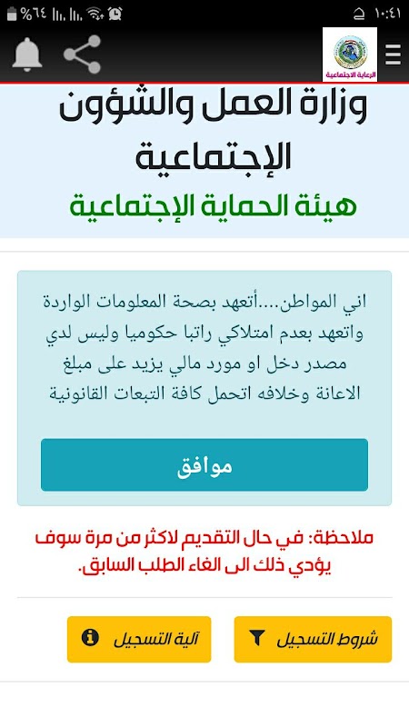 Aplikacja oferuje rejestrację na pomoc społeczną