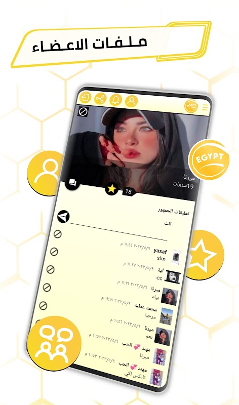 Publiczne i prywatne czaty ze wszystkich krajów arabskich oraz wysyłanie zdjęć i filmów.