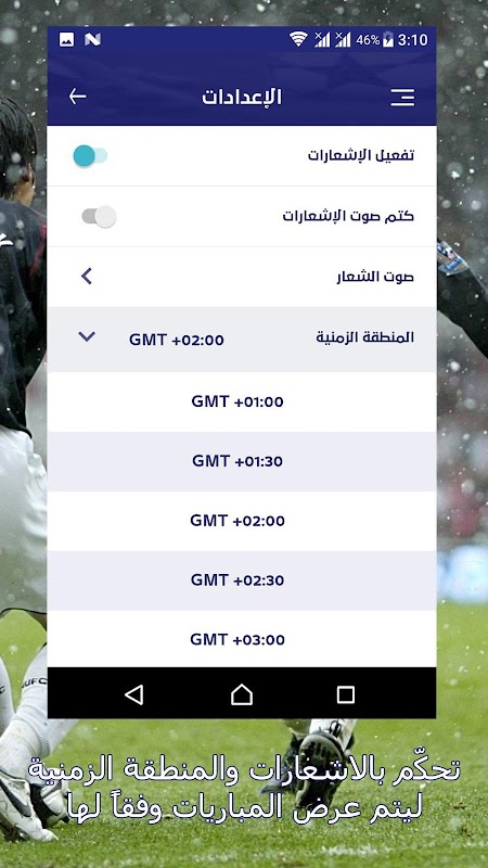 5 - إمكانية تغيير توقيت المباريات ليتناسب مع التوقيت المحلي الخاص بمنطقتك.